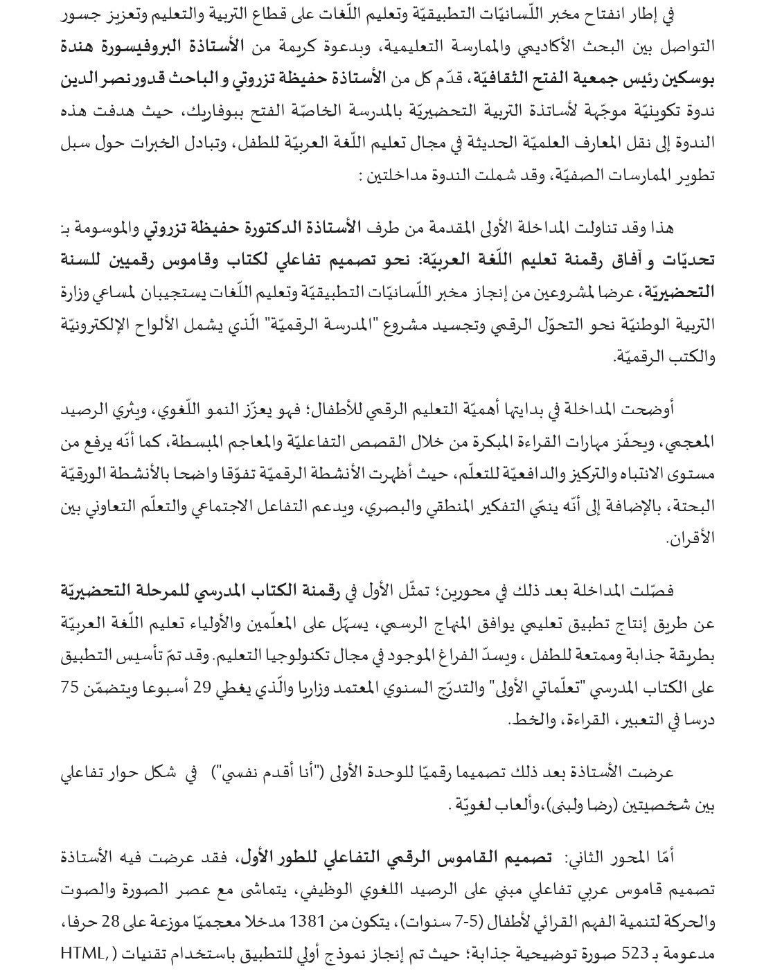 تقرير ندوة تكوينيّة موجّهة لأساتذة التربية التحضيريّة بالمدرسة الخاصّة الفتح ببوفاريك يوم الخميس 02 أفريل 2026م